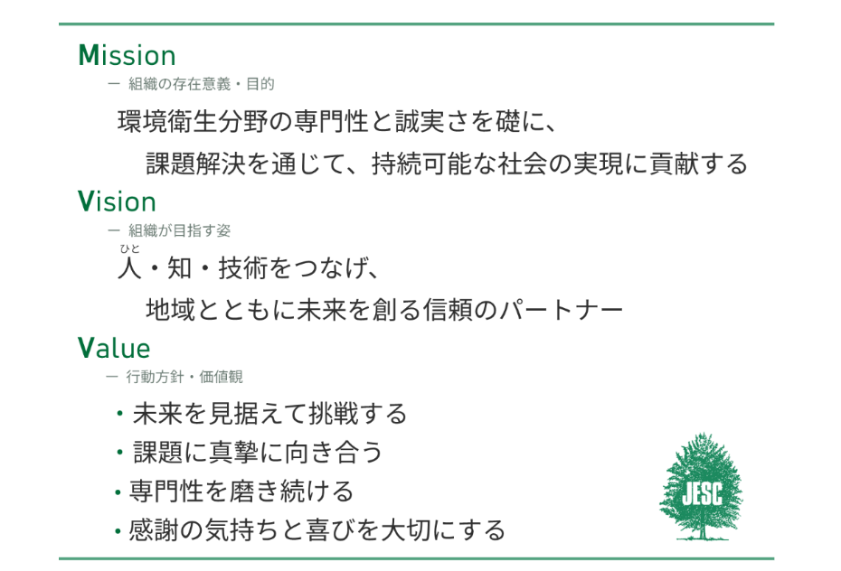MVVの策定にあたっては、「JESCをつくり上げ、高めていくのは全役職員である」という考えのもと、創立以来ともいえる規模で、全拠点(総局・東日本支局、西日本支局、ACAP)を横断した職員参加型のワークショップ・意見交換を2025年7月に実施しました。