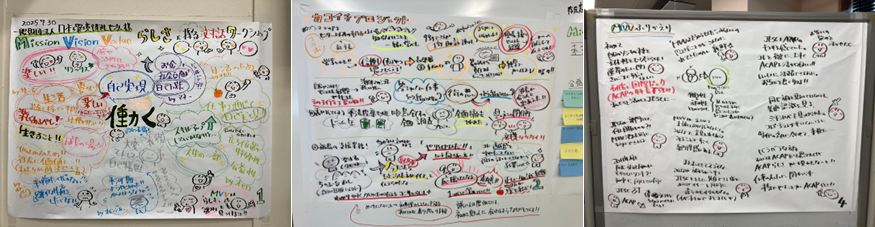 職員一人ひとりが、顧客や関係者、そして社会課題と真摯に向き合うなかで、日ごろ大切にしてきた価値観や、今後大切にするべき価値観、そして望ましい行動のあり方について率直に語り、多くの意見が自然と集まりました。職員がこれまで真摯に仕事に向き合い、誠実さをもって顧客や社会に貢献してきたことを再認識する貴重な機会となりました。